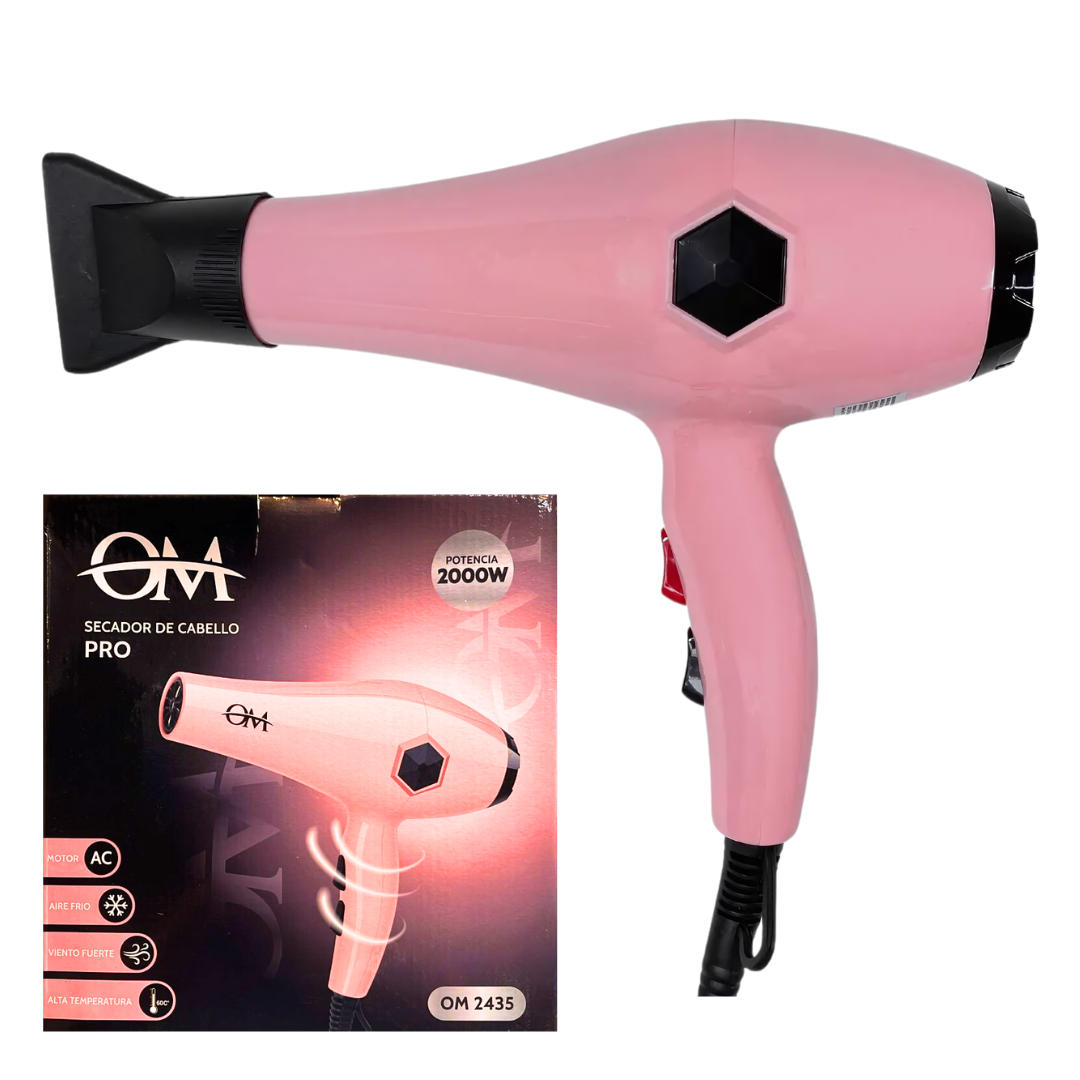 El secador de pelo OM 2000W a 220V Frío Calor con CABLE GIRATORIO es la herramienta ideal para quienes buscan un secado rápido y eficiente.