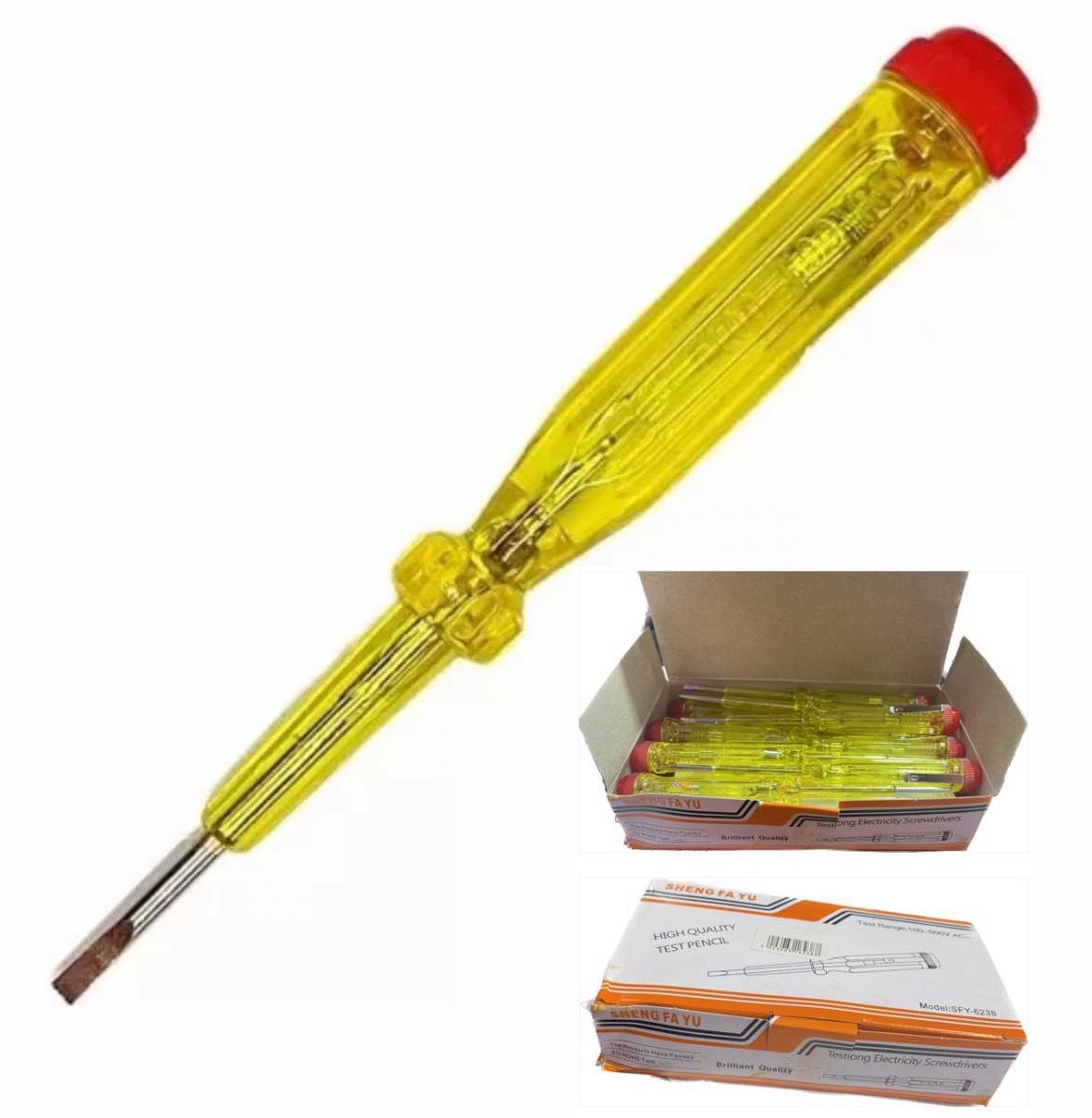 - Funcionamiento: Al tocar la punta metálica un cable energizado y hacer contacto con el dedo en la parte superior, una pequeña lámpara en su interior se ilumina.