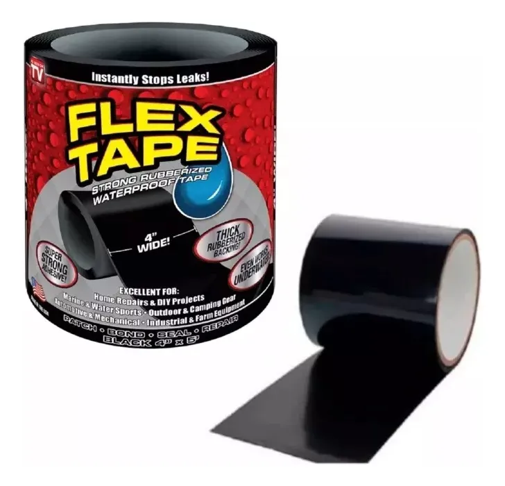 Cinta Flex Tape Impermeable Autofusión Pega Sella Todo El caucho natural inodoro ofrece una fuerte adherencia en casi todas las superficies. La fusión del tejido con el soporte de polietileno hace que la cinta sea ultrarresistente, pero se puede rasgar con la mano. Resistente al agua, a los rayos UV, al frío y al calor, la cinta blindada ultrafuerte es ideal para cualquier actividad al aire libre; una compañera fiable tanto en verano como en invierno. Sin dejar restos: los molestos residuos de pegamento son cosa del pasado. Simplemente retira la cinta. Superficie base sin pegamento y sin arañazos. Rápido y fácil: nuestra cinta es especialmente fácil de arrancar y se adhiere a superficies irregulares, ya que es más fuerte y flexible que cualquier otra cinta. Esta cinta impermeable está hecha de un adhesivo ultrafuerte que se adhiere a cualquier superficie dura y puede soportar condiciones climáticas extremas.
