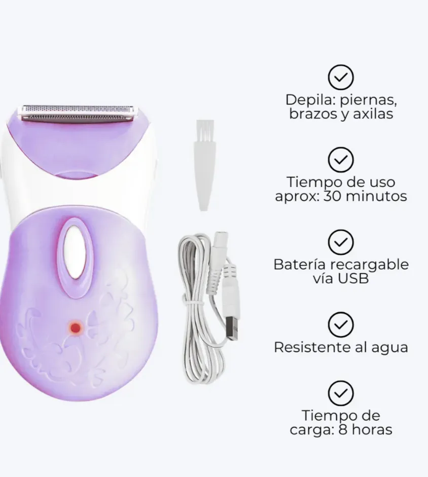 La depiladora femenina recargable USB de la marca OM es la solución ideal para quienes buscan una depilación efectiva y cómoda. Su diseño en color blanco y su tamaño compacto la hacen perfecta para llevar a cualquier lugar. Con un cabezal removible y un tiempo de uso de hasta una hora, es ideal para tratar axilas, brazos y piernas. Este dispositivo es inalámbrico y apto para uso mojado, lo que permite una mayor versatilidad en su aplicación. Incluye un cable de carga USB y un cepillo de limpieza, asegurando que siempre esté lista para usar. Su única velocidad es suficiente para ofrecer resultados suaves y duraderos. Con un peso de solo 115 g y dimensiones compactas, es fácil de almacenar y transportar. La depiladora OM6051 es perfecta para quienes valoran la eficacia y la comodidad en su rutina de cuidado personal. Disfruta de una piel suave y libre de vello con esta depiladora práctica y funcional. - Tiempo de carga 8hs. - A plena potencia se puede usar hasta 30min. - Al cargar se enciende la luz roja, lleno de carga, luz verde. - Boton de encendido/apagado - Carga USB (cable incluido)