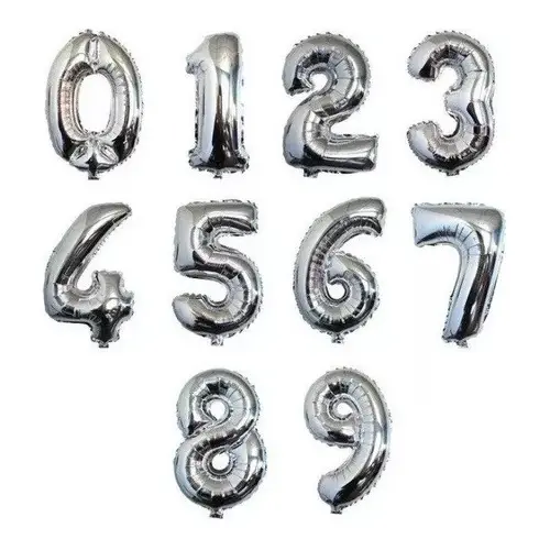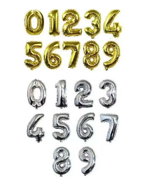 “ GLOBOS METALIZADOS DE NÚMEROS x 1 UNIDAD ” - ESPECIFICAR POR MENSAJERÍA INTERNA EL COLOR Y NUMERO REQUERIDO - * NO HAY STOCK EN NUMERO 1 PLATEADO * » ESPECIFICACIONES - Presentación: 1 unidad. - Color: Dorado o Plateado. - Medida: 16'' pulgadas - Aproximadamente 40 cm. - Pueden inflarse con aire o helio.