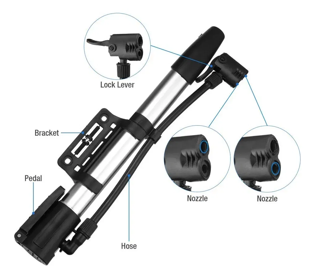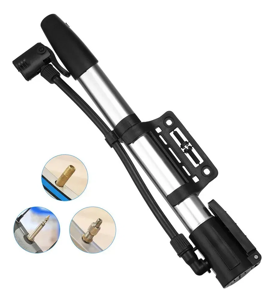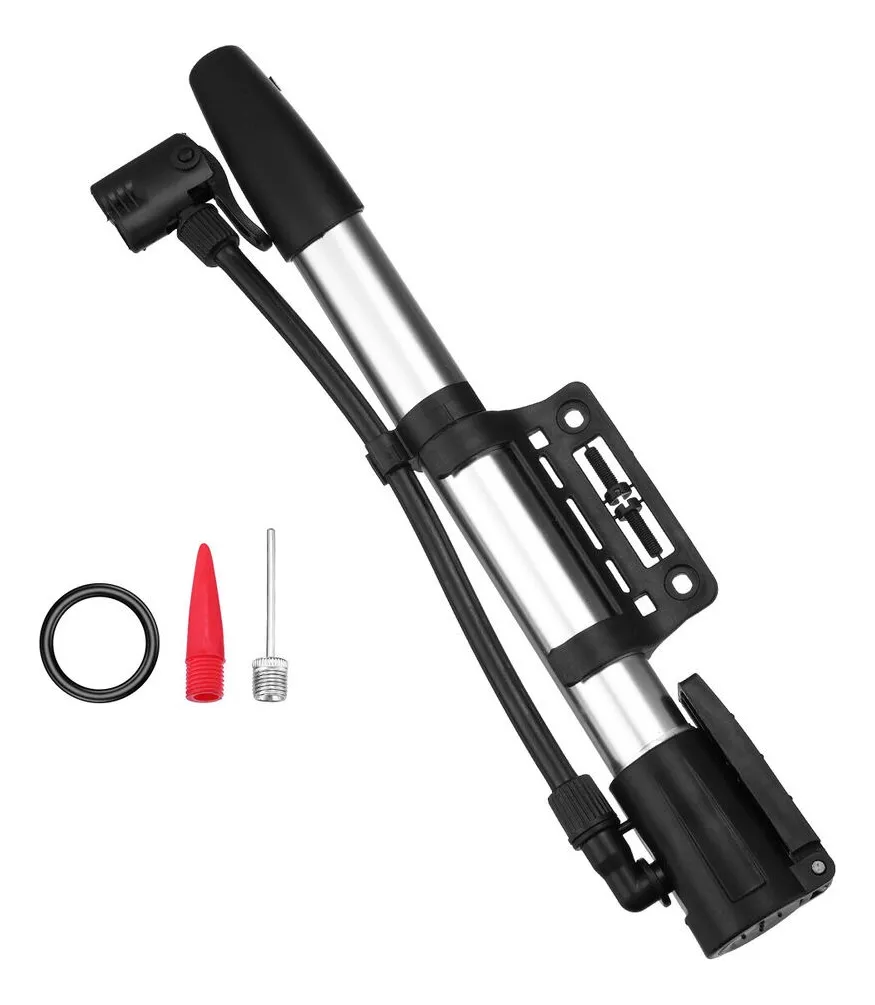 INFLADOR DE BICICLETA DE ALUMINIO CON PICO PARA BICICLETAS - Práctico y liviano - Incluye pico de bici, adaptador para auto, pico para pelota y pico para inflables - Aproximadamente 30cm de largo, ideal para llevar en la bici para salir de cualquier eventualidad - Incluye soporte y tornillos para agararrlo al cuadro
