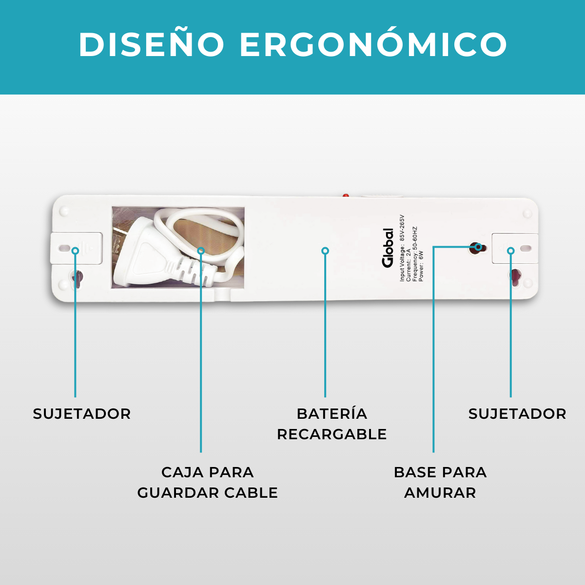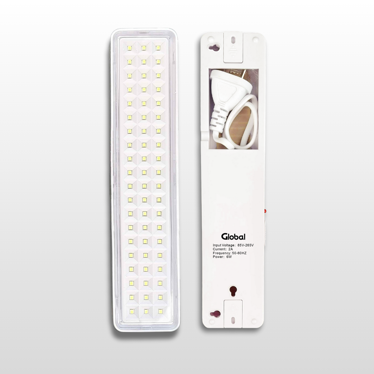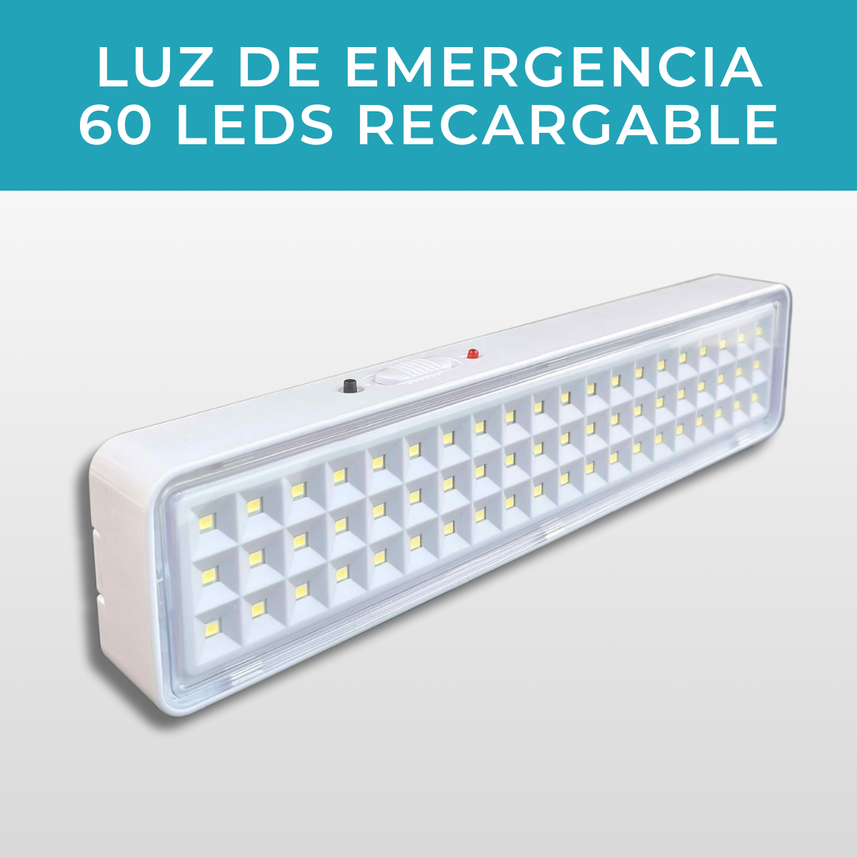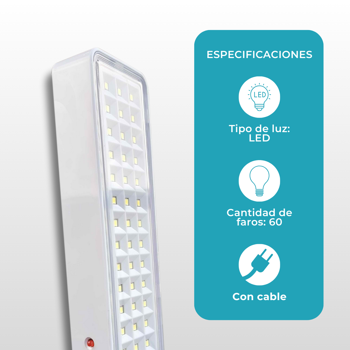Luz de Emergencia de 60 LED con batería recargable de larga duración. Brinda hasta 6 horas de autonomía, ideal para cortes de energía en el hogar u oficina.
