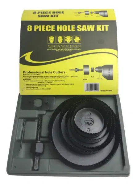 Descubre el 'Juego Mecha Sierra Copa X 8 Piezas Madera Durlock , una herramienta esencial para tus proyectos de bricolaje. Este set incluye mechas de diferentes tamaños: 2 1/2" (64MM), 3" (76MM), 3 1/2" (89MM), 4" (102MM) y 5" (127MM), permitiéndote realizar cortes precisos en madera, plásticos y durlock. Además, cuenta con una mecha guía, una llave Allen y un suplemento de refuerzo, garantizando un uso eficiente y seguro. Su diseño compacto, con dimensiones de 27 cm de altura, 21 cm de ancho y 6 cm de largo, facilita su almacenamiento en la caja ordenadora incluida. Con un peso de 760 g, es fácil de manejar. Este set de 8 unidades es ideal para quienes buscan calidad y versatilidad en sus herramientas.