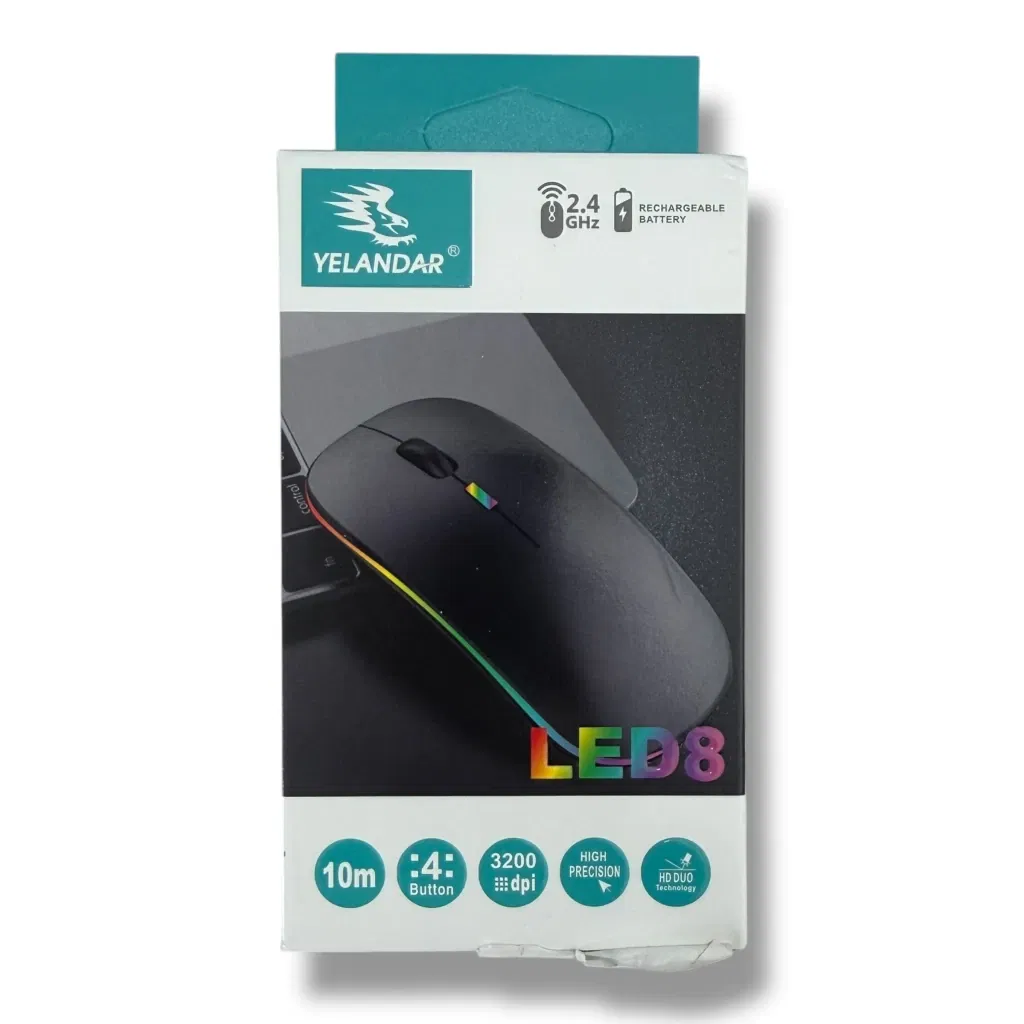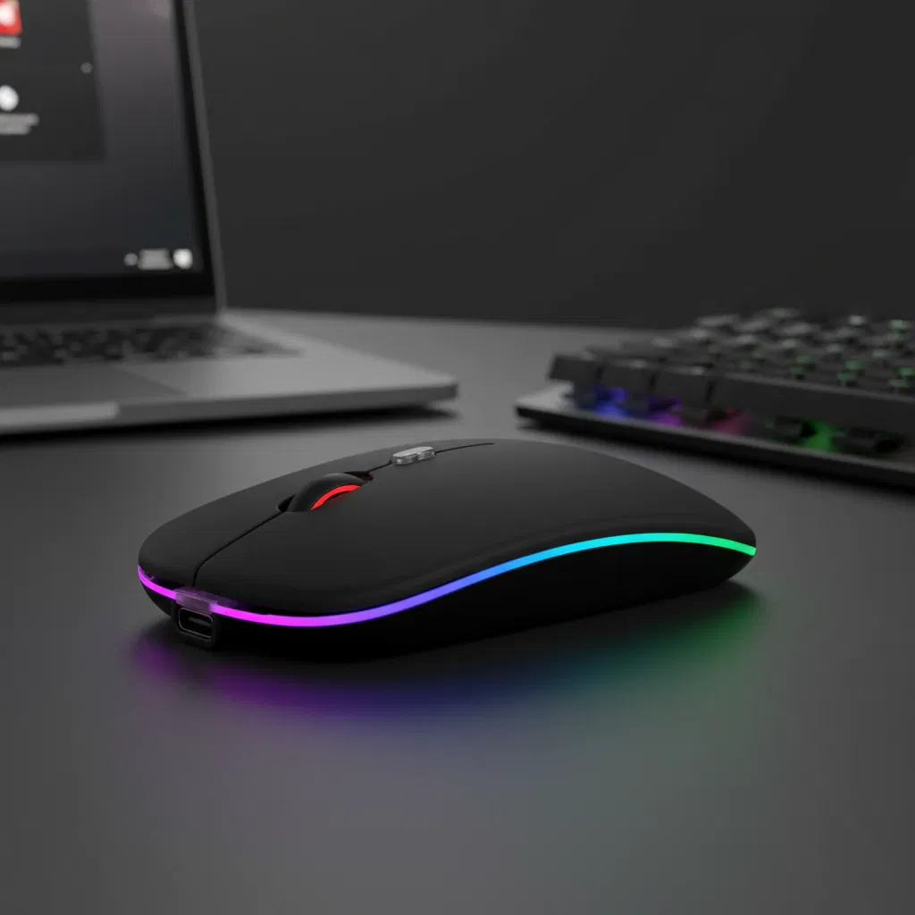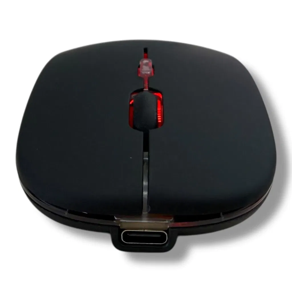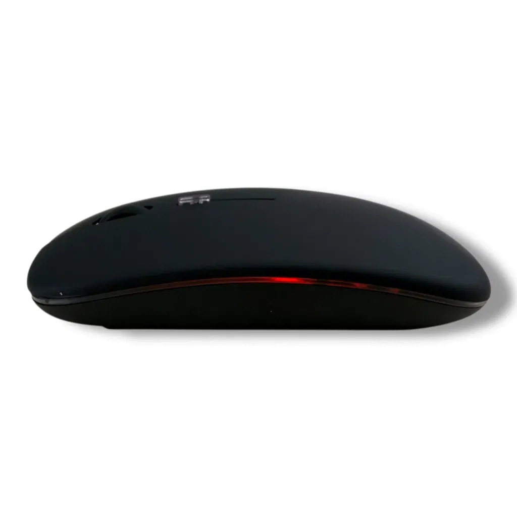 Mouse inalámbrico con batería recargable y retroiluminación LED multicolor. Diseñado para ofrecer un control preciso y conexión estable por tecnología inalámbrica de 2.4 GHz.