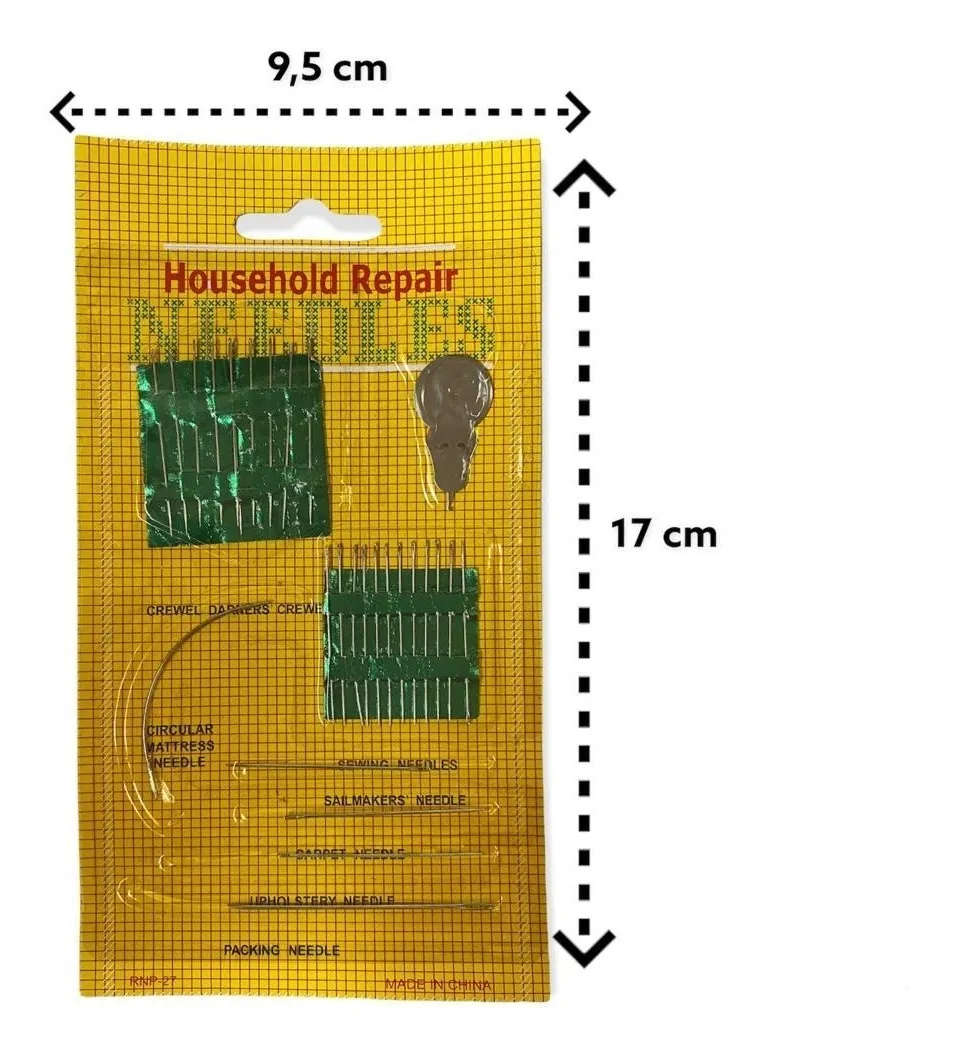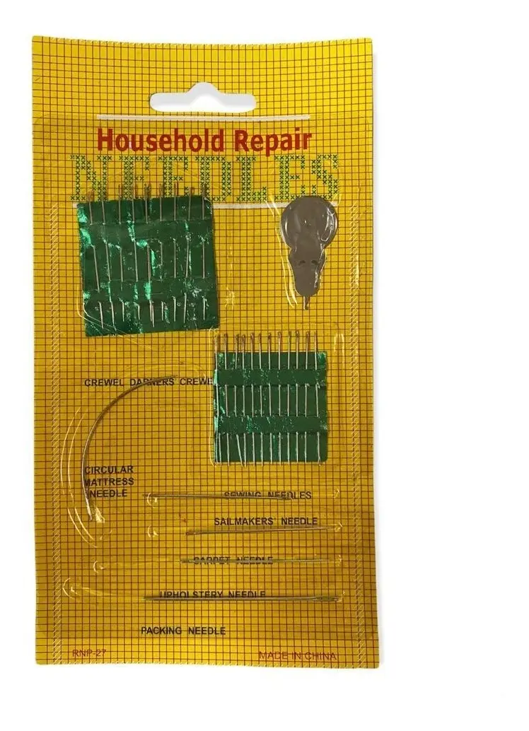 Incluye diversas agujas para coser a mano, bordar y agujas curvas