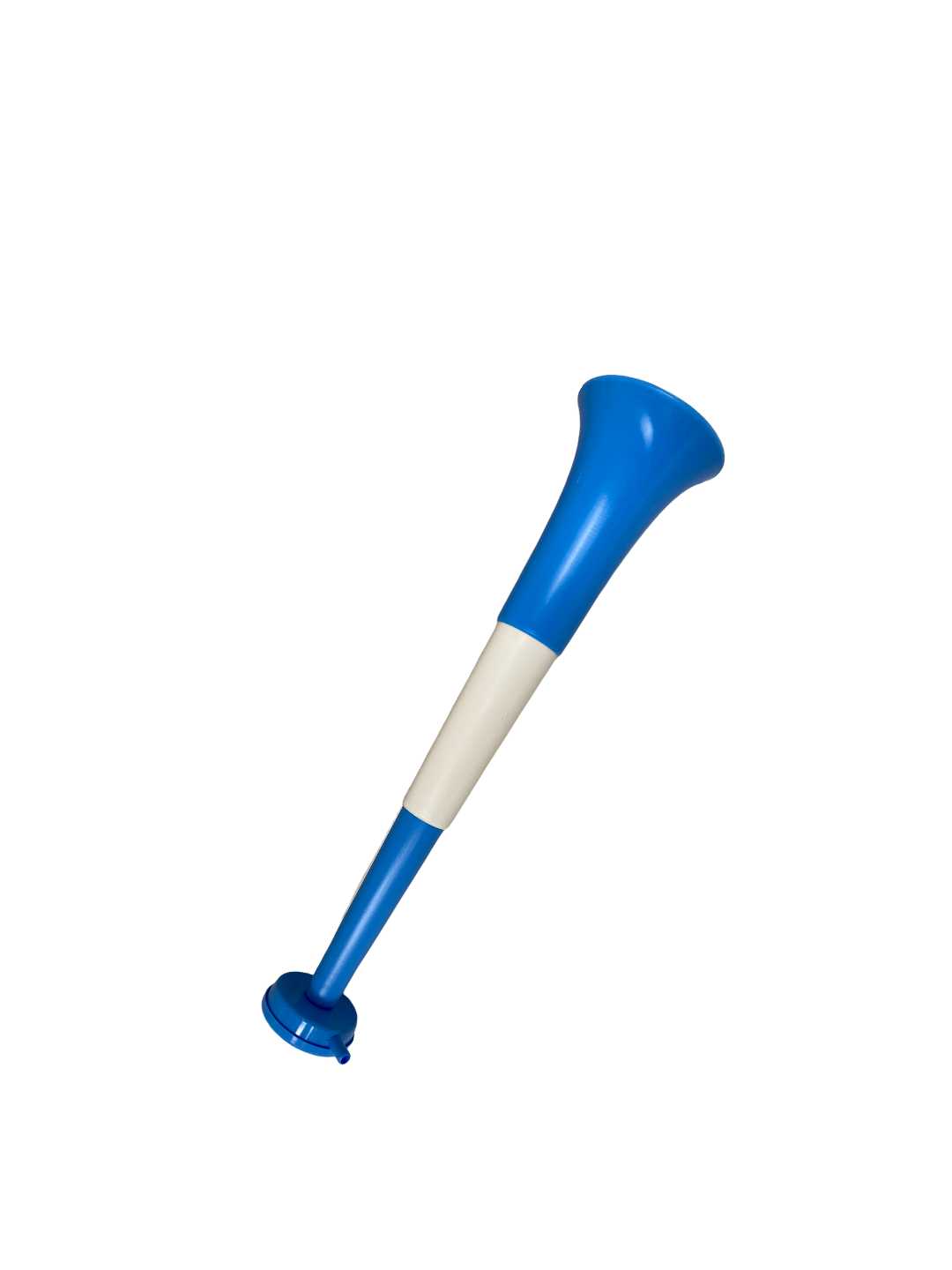 Tipo: Vuvuzela extensible Colores: Celeste y blanco Material: Plástico resistente Medidas: 60 cm de largo, 10 cm de ancho Uso: Fútbol, eventos, fiestas, celebraciones